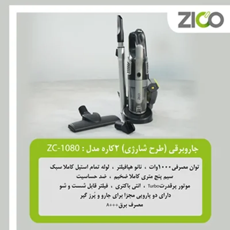 جارو برقی عصایی شارژی زیکو مدل ZC-1080