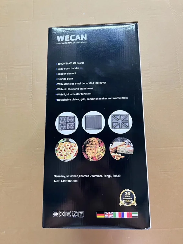 در صورتی کە شما از ان دستە از افرادی هستید که به خوردن ساندویچ علاقه دارید تهیە ساندویچ ساز از اساسی ترین نیازمندی های منزل در اشپزخانە است .ممکن است خیلی از افراد این ساندویچ ساز را برای استفادەی اشپزی سریع ضروری ندانند. ولی در بعضی از مواقع کە زمان کافی جهت پخت و طبخ غذا ندارید.این محصول با طراحی منحصر به فرد و زیبایی که دارد توانسته است به یکی از پرطرفدارترین ساندویچ سازهای دنیا باشد. این ساندویچ ساز که دارای توان 1800 وات می باشد جهت تهیه انواع ساندویچ های خوشمزه، اسنک، گریل کردن، وافل ساز و کباب پز حرفه ای مورد استفاده قرار می گیرد. این ساندویچ ساز با توجه به مدل های متفاوتی که در بازار موجود است دارای آپشن های متفاوتی می باشد. به عنوان مثال قابلیت تعویض صفحه ساندویچ ساز، جنس بدنه، دارا بودن پوشش نچسب و … که شما می توانید با توجه به نیاز خود مدل مورد نظر را با قیمتی بسیار مقرون به صرفه تهیه نمایید . دستگاه ساندویچ ساز ویکن WSM9423 بدنه ای بادوام و مستحکمی دارد.و WECAN برای ساخت این محصول از مواد اولیه مرغوب استفاده کرده تا مشتریانش همیشه از خریدشان راضی باشند. حس رضایت کاربران از این برند باعث شده تا ویکن محصولاتی را وارد بازار کند که از کیفیت خوب برخوردار شود.ساندویچ ساز ویکن WSM9423 از بدنه ای مشکی رنگ ساخته شده و برای جذابیت و خود نمایی بیشتر ظاهرا این شرکت تصمیم گرفته قسمت رویی درب را استیل طراحی کند. بر روی درب دو عدد چراغ نشانگر قرمز و سبز مشاهده می شود. که نشان دهنده ی شروع پختن ساندویچ می باشد. دسته ی تعبیه شده در این مدل متناسب و عایق حرارت ساخته شده تا کاربر هنگام استفاده با سوزش و منتقل شدن گرما به دست مواجه نشود. این ساندویچ ساز دارای پایه های ضد لغزش است که قرار گیری بر روی کابینت و سطوح مختلف را آسان تر می کند. با هر بار استفاده از آن می توانید 4 عدد تست برای خودتان تهیه کنید. کار با ساندویچ ساز ویکن بسیار آسان است. و شستشوی صفحه اش به زمان زیادی نیاز نخواهد داشت. وجود قفل ایمنی در این دستگاه، امنیت کامل را حفظ خواهد کرد. فقط کافیست مواد مورد نیاز را تهیه کرده و داخل ساندویچ ساز قرار دهید. تا در عرض چند دقیقه با توان 1800 واتی شاهد اسنک های طلایی رنگ و خوشمزه باشید.