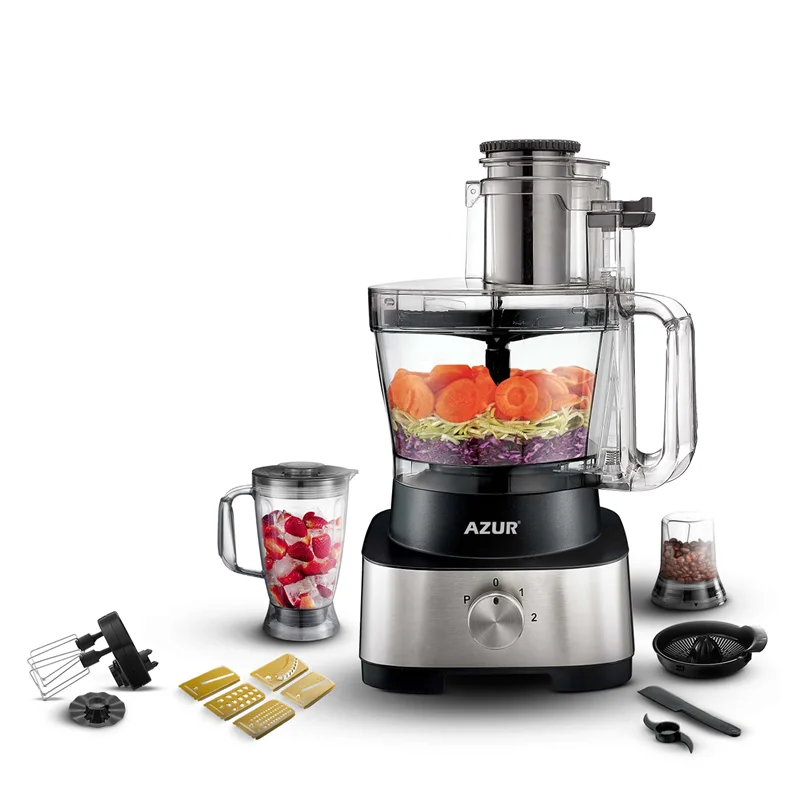 غذاساز آزور AZ-271FP یکی از مدلهای قدرتمند و چندکاره برند آزور است که با موتور ۱۰۰۰ وات و امکانات فراوان، انتخابی مناسب برای آشپزخانههای مدرن و پرکار است. این دستگاه قادر است ۳۳ عملکرد مختلف را تحت پوشش قرار دهد—از خردکردن و رنده کردن گرفته تا خمیر زدن و آبگیری مرکبات. اگر دنبال دستگاهی قدرتمند، همهکاره و بادوام هستی، AZ-271FP میتونه انتخابی عالی باشه.