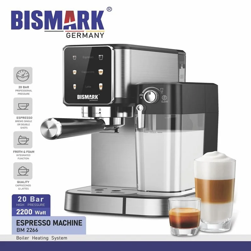 با اسپرسو ساز بیسمارک مدل BM2266، هر روزتان را با طعم واقعی قهوه آغاز کنید! این دستگاه با مخزن شیر یکپارچه، امکان تهیه لاته و کاپوچینو با کیفیت کافهای را در خانه به شما میدهد. طراحی مدرن، عملکرد بینقص و استفاده آسان از ویژگیهای منحصر بهفرد این اسپرسو ساز است. تجربهای لذتبخش از قهوه دلخواهتان را به خانه ببرید!