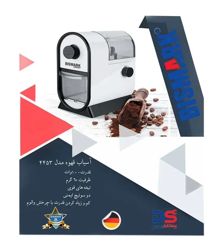 متاسفانه برخی از افراد سودجو در بازار اعتماد مردم نسبت به خرید انواع قهوه یا ادویه به صورت پودر شده را از بین بردهاند. به همین دلیل بسیاری از افراد دوست دارند تا دانههای قهوه یا انواع ادویهجات را به طور دستی آسیاب کنند. آسیاب قهوه بیسمارک 4453 محصول مناسبی برای آسیاب کردن قهوه و انواع ادویه جات در کمترین زمان می باشد. شرکت بیسمارک یک برند آلمانی است که در زمینه تولید لوازم خانگی فعالیت میکند. زمانی که درباره یک محصول آلمانی صحبت میکنیم، یعنی با یک کالای با کیفیت طرف هستیم که میتواند مدت زمان زیادی را در منزل ما مشغول به کار باشد. این محصول از برند اصلی بوده و به صورت کاملا اوجینال به دست مصرف کننده میرسد.بدنه دستگاه از جنس فلز و پلاستیک با کیفیت بوده و ظاهر خوبی دارد. این محصول مانند سایر دستگاههای آسیاب قهوه چندان بزرگ نیست و میتواند در هر فضای کوچکی قرار بگیرد. پس اگر در آشپزخانه خود با کمبود فضا رو به رو هستید، این محصول گزینه خوبی برای شما خواهد بود.برای استفاده از دستگاه نیازی نیست که مهارت خاصی داشته باشید. کافیست دانههای قهوه یا ادویهجات خشک خود را در مخزن بالایی دستگاه بریزید و به صورت آسیاب شده در مخزن پایینی تحویل بگیرید. روی دستگاه یک درجه تنظیم و دکمه فشاری وجود دارد که به شما کمک میکند تا آسیاب قهوه یا ادویه را طبق سلیقه خودتان انجام دهید. کافیست که دکمه فشاری را نگهدارید تا موتور شروع به کار کند. البته توجه داشته باشید که برای آسیاب ادویه باید درجه دستگاه را روی حالت آسیاب ریز قرار دهید.دستگاه آسیاب قهوه و ادویه بیسمارک مدل bm4453 از یک تیغه فلزی ساخته شده که مقاومت بسیار بالایی دارد. به همین دلیل هیچ محدودیتی برای آسیاب کردن ندارید و میتوانید انواع قهوه یا ادویه را در مخزن ورودی دستگاه بریزید و پودر نرمی از آنها به دست بیاورید