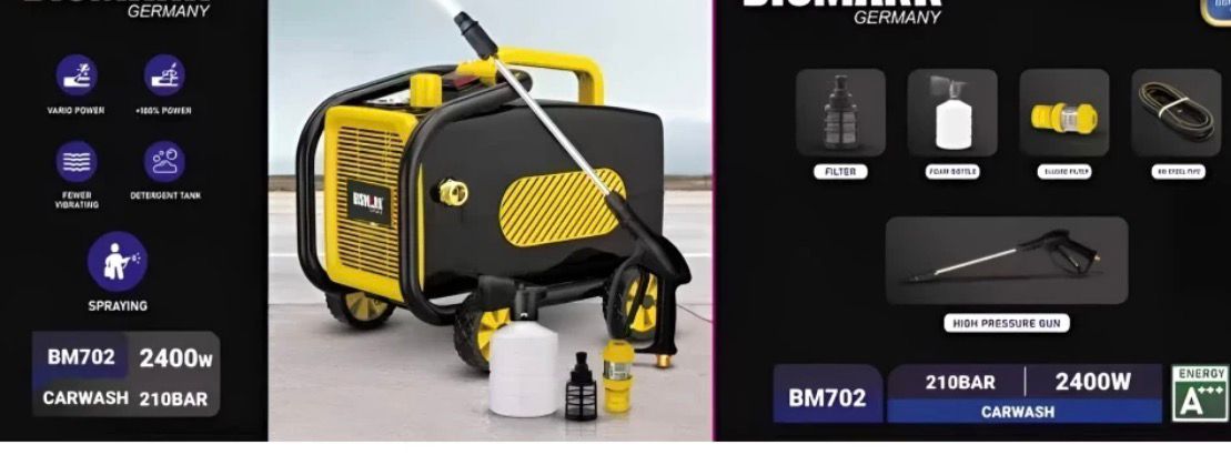 اگر به دنبال یک کارواش خانگی فشارقوی با عملکرد قابل اعتماد و تجهیزات کامل هستی، کارواش بیسمارک مدل BM702 میتواند انتخابی عالی، پرقدرت و مقرونبهصرفه برای نظافت و شستشوی سطوح مختلف در منزل یا محیط کار باشد.