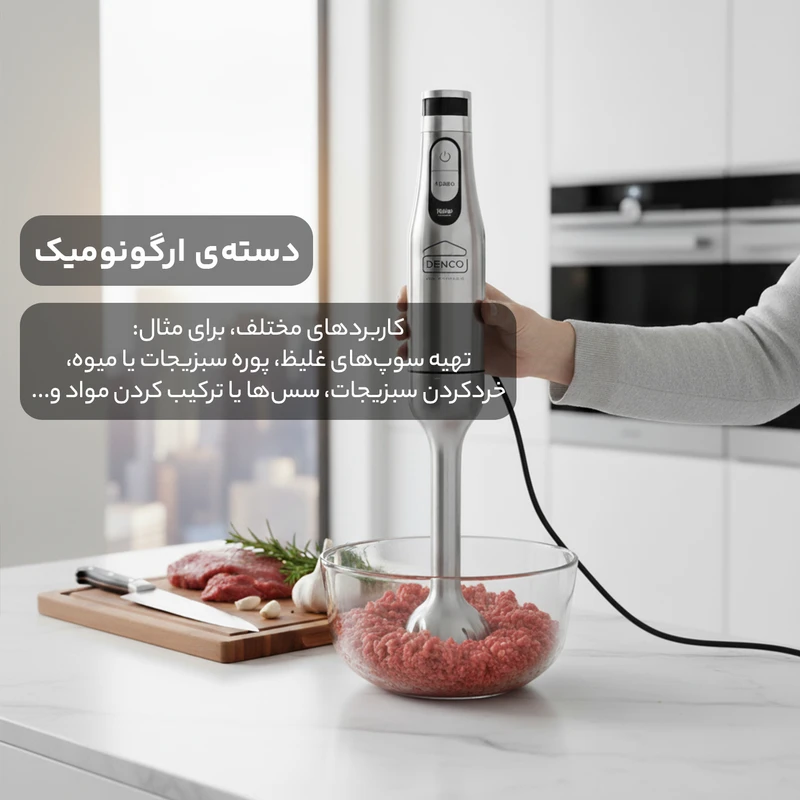 گوشت کوب برقی DEHCO مدل DHB-1201 یک همزن دستی قدرتمند با طراحی مدرن و موتور پرتوان 1200 وات است که برای پوره کردن، مخلوط کردن و آمادهسازی انواع مواد غذایی انتخابی ایدهآل برای آشپزخانههای خانگی محسوب میشود.