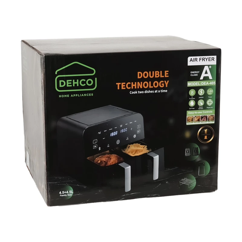 سرخکن دهکو مدل DEH-405 یک ایرفرایر کاربردی و خانوادهپسند است که با ظرفیت 8 لیتری و توان 1800 وات، امکان پخت سالم و سریع انواع غذاها را با حداقل روغن فراهم میکند. این مدل با پنل لمسی LED، 10 برنامه پخت پیشفرض و قابلیت تنظیم دما و زمان، انتخابی مناسب برای آشپزی روزانه، رژیمی و کمچرب است.
