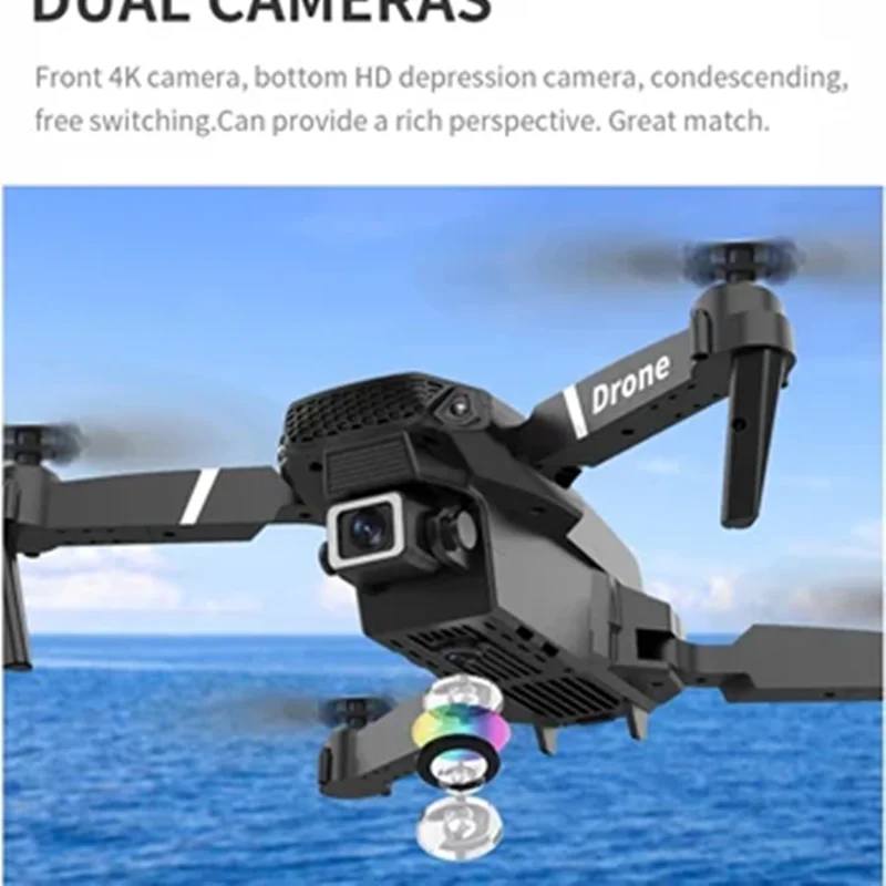 کوادکوپتر دو دوربین مدل E88 pro با قیمت منطقی، دو دوربین یکی در جلو و یکی در قسمت زیرین کوادکوپتر دارد. این دوربین ها ویژگی عکسبرداری و فیلمبرداری با کیفیت خوب را دارد با این حال نباید از آنها انتظار داشته باشید که خروجی در حد فیلم های خیلی مستندی به شما بدهد. تصاویر این دوربین ها در حد تصویربرداری های شخصی و خانگی برای تفریح کاربرد دارد.