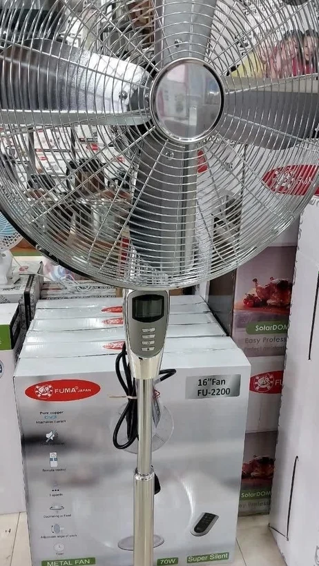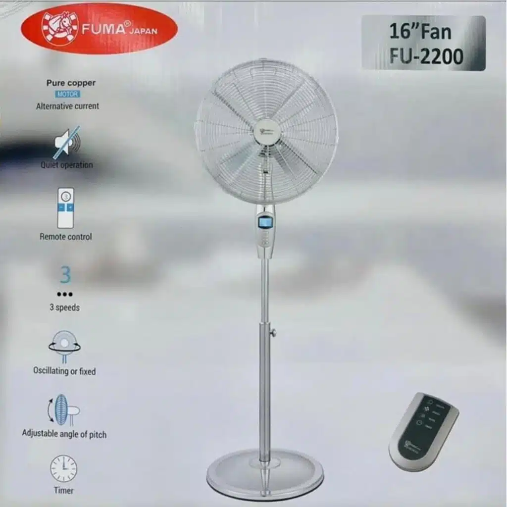 پنکه ایستاده فوما FU-2200 با توان 70 وات، پره 16 اینچ، ارتفاع قابل تنظیم، کنترل از راه دور و تایمر تا 8 ساعت، مناسب برای استفاده در خانه و محیط کار.