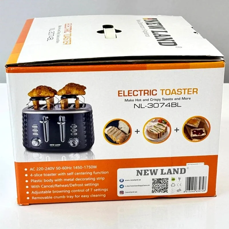 توستر نان **نیولند مدل NL-3074** با توان بین ۱۴۵۰ تا ۱۷۵۰ وات، دارای ۴ اسلات مستقل است. گزینهای ایدهآل برای خانوادههای پرمصرف و آشپزخانههای سریع، این مدل با تنظیم خودکار خاموشی، عملکرد یخزدایی، و سینی جمعآوری خردهنان، تجربهای بهروز و کاربردی از تهیه صبحانه فراهم میکند. ساخت چین تحت لیسانس آلمان، کیفیت و کارایی را تضمین میکند.