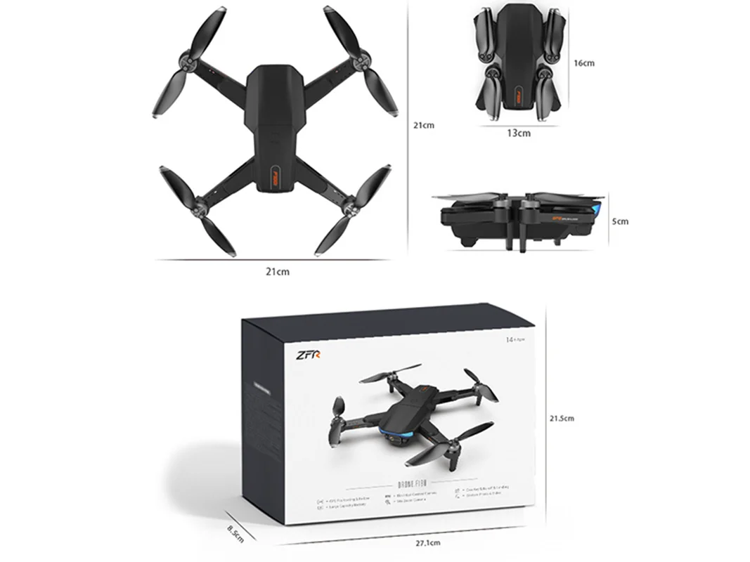 کوادروتور ZFR F188 از بدنهای تاشو و جمع شونده برخوردار است. بر این اساس میتوان بازوهای آن را به راحتی جمع کرده و آن را در یک کوله پشتی یا کیف دستی قرار داد. جمع شدن بازوهای پهپاد باعث میشود تا حمل آن به آسانی صورت گیرد و انتقال آن به هر مکانی ممکن شود. ابعاد این Drone در حالت عادی برابر با 28.5X28.5X5 سانتیمتر و در حالت تاشونده برابر با 13X8.3X5.7 سانتیمتر است.