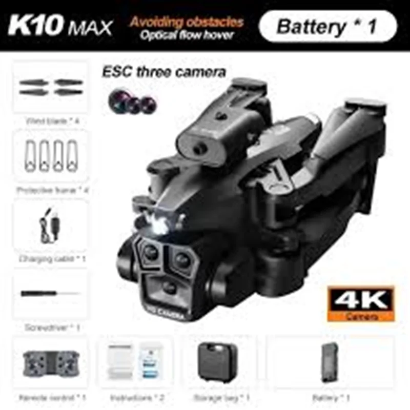 کوادروتور K10 Max مجهز به چندین قابلیت و تکنولوژی است. این پهپاد در کنار برخورداری از فناوریهای بروز، از ظاهری زیبا و کاربری آسان برخوردار است و گزینه بسیار خوبی برای افراد مبتدی تا حرفهای میباشد. از سیستمها و امکانات موجود در این محصول پروازی باید به دوربین HD ، سیستم جلوگیری از برخورد با موانع چهار طرفه، چراغهای ناوبری LED، سیستم Optical flow، قابلیت تعویض سرعت، پرواز 360 درجه، کنترل با یک کلید، انتقال تصویر HD، پرواز در مسیر از پیش رسم شده، حالت بدون سر و عکاسی بدون ژست اشاره کرد.