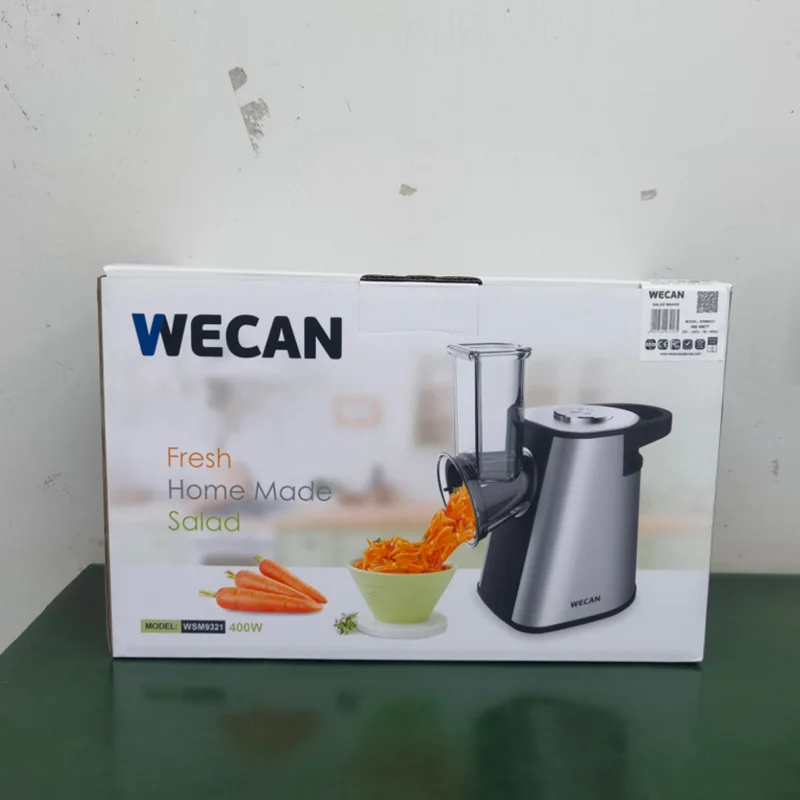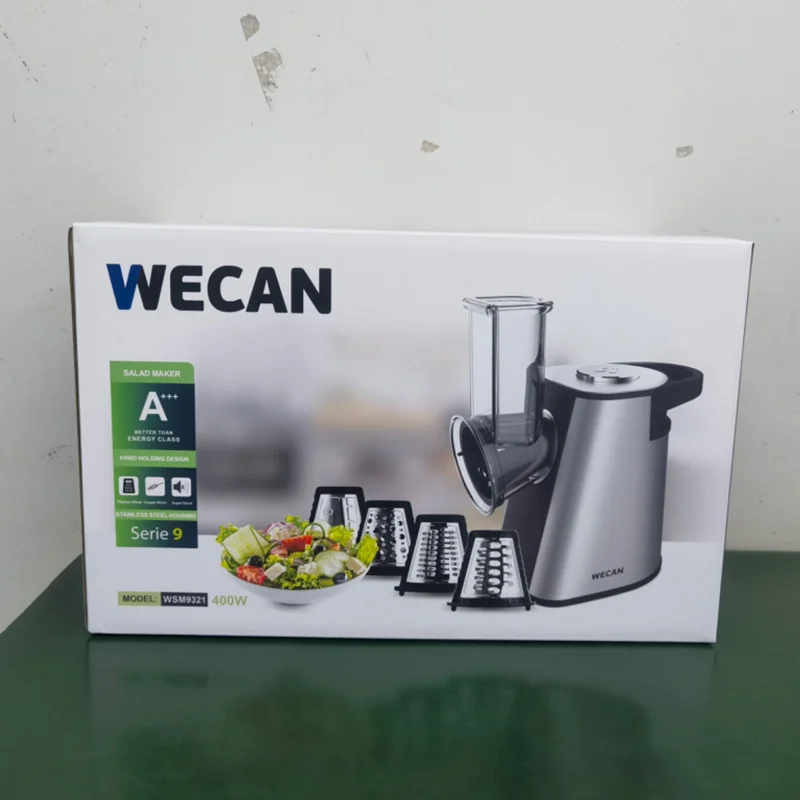 سالاد ساز | رنده برقی ویکن WECAN مدل WSM9321 دارای قابلیت خردکردن موادغذایی به شکلهای مختلف است به نحوی که به وسیله 5 تیغهای که در این دستگاه قرار دارد، شما میتوانید مواد غذایی و سبزیجات را به حالت رنده ریز و درشت یا به صورت برشهای نازک و ضخیم خرد کرده و از آنها در طبخ غذا استفاده کنید.