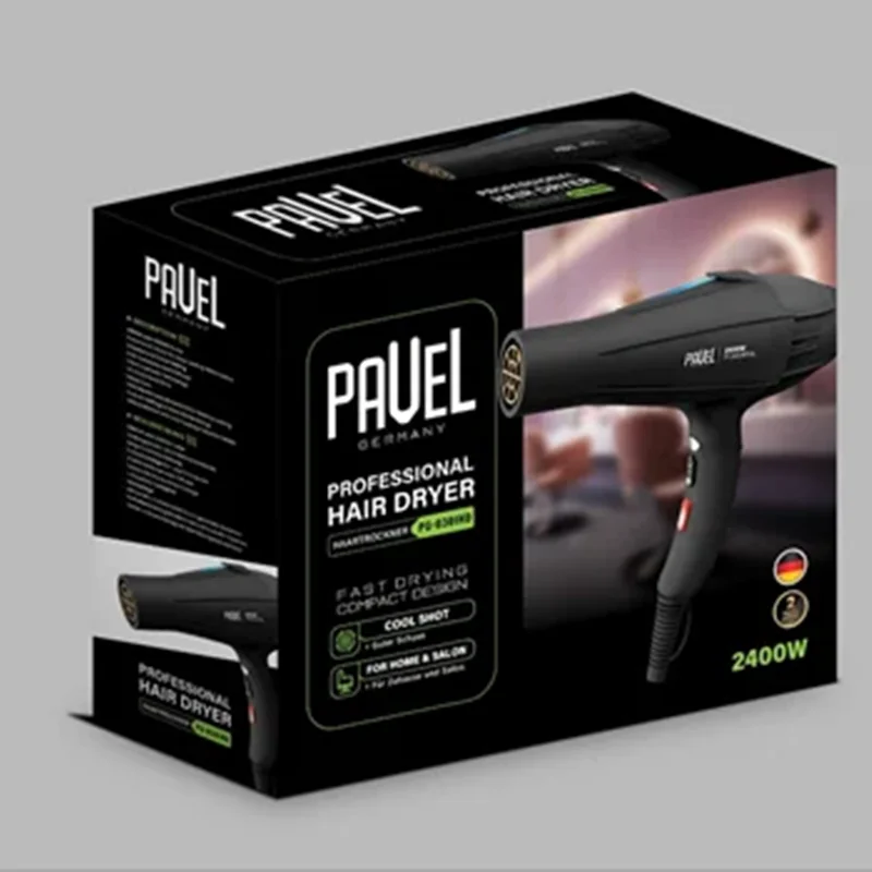 برای تمام آرایشگران استفاده کردن از یک سشوار که بتواند موهای مشتریانشان را در کمترین زمان ممکن خشک کرده یا حالت دهد از اهمیت بالایی برخوردار است. سشوار سالنی پاول مدل PG-0301HD تولید شده توسط شرکت «پاول» (PAVEL) به راحتی میتواند این کار را انجام دهد. این سشوار موتوری با قدرت 2400 وات دارد که در مقایسه با سشوارهای دیگر قدرت موتور بسیار بالایی است. هر چه قدرت موتور بالاتر باشد قدرت خروج هوا بیشتر میشود. درنتیجه موها در مدت زمان کمتری خشک میشوند. از دیگر ویژگیهای این سشوار میتوان به تولید هوای سرد اشاره کرد، قابلیتی که باعث میشود حالت مو حفظ شده و لطافت و درخشندگی موها نیز افزایش یابد. این قابلیت را میتوان با زدن دکمهای کوچک که زیر سری خروجی هوا قرار دارد، فعال کرد. موتور AC استفاده شده در این دستگاه در مقایسه با موتورهای DC دارای سرعت و قدرت هوای بیشتری است و همین عامل باعث میشود که موها سریعتر خشک شوند. همچنین این نوع موتور طوری طراحی شده است که میتواند مدت زمان بیشتری بهصورت ممتد روشن بماند، ویژگیای که برای مصارف حرفهای از جمله آرایشگاهها مهم است. از دیگر امکاناتی که برای این سشوار در نظر گرفته شده است، امکان تنظیم سرعت و دمای هوای خروجی است. این قابلیت به حالت دادن، خشک و صاف کردن سریعتر موها کمک فراوانی میکند. حلقهی آویختن استفاده کردن از این سشوار را آسانتر کرده است.سشوار سالنی پاول مدل PG-0301HD دارای موتور AC با قدرت 2400 وات، قابلیت تولید هوای سرد و امکان تنظیم سرعت و قدرت هوای خروجی است.