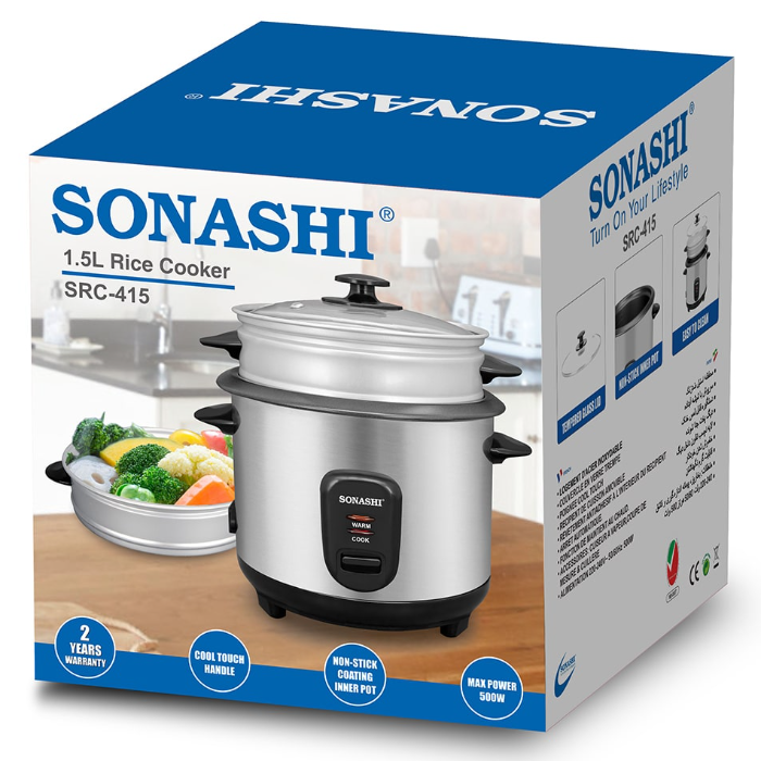با پلوپز و بخارپز 1.5 لیتری سوناشی مدل SRC-415، تجربه آشپزی حرفهای را به خانه بیاورید! با ظرفیت مناسب، این دستگاه گزینهای عالی برای تهیه غذاهای سالم و خوشمزه است. عملکرد چندگانه و طراحی کاربرپسند آن، فرآیند پختوپز را ساده و سریع میکند. همین امروز خرید کنید و طعم لذتبخش زندگی را بچشید!