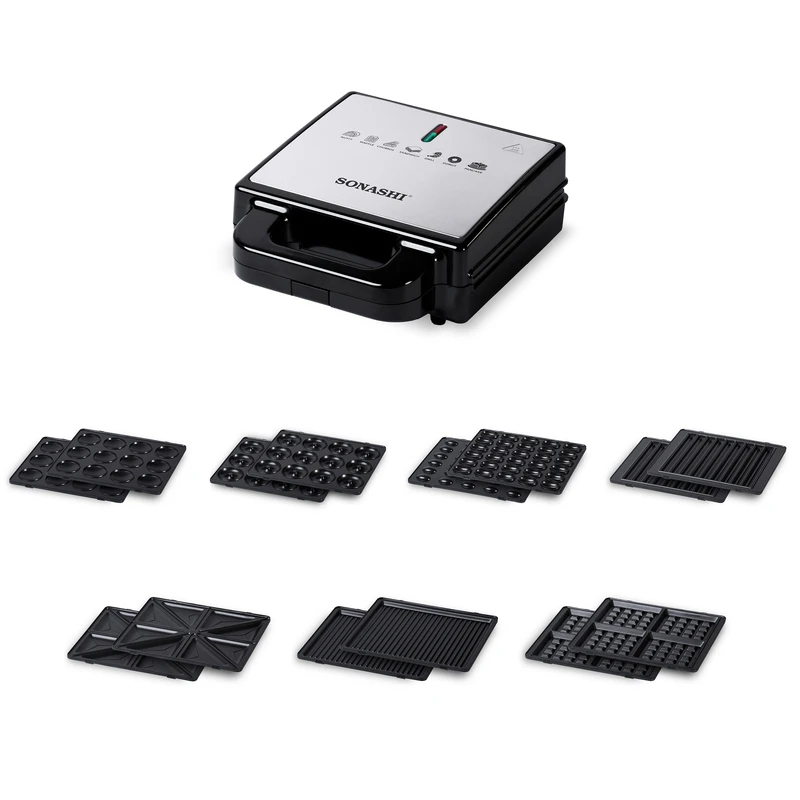 ساندویچ ساز سوناشی مدل SSM-881 یک دستگاه چندکاره و حرفهای برای تهیه انواع میانوعدههای خوشمزه است. این مدل با داشتن ۷ عملکرد مختلف و صفحات قابل تعویض، امکان تهیه اسنک، گریل، وافل و دیگر غذاها را فراهم کرده و مناسب آشپزخانههای مدرن و افرادی است که به دنبال یک دستگاه همهکاره و کاربردی هستند.
