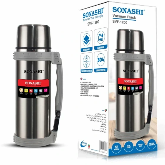 فلاسک مسافرتی 1.2 لیتری سوناشی مدل SVF-1200، همراه ایدهآل شما در سفرها! با طراحی زیبا و مقاوم، این فلاسک دمای نوشیدنیهای شما را برای ساعتها حفظ میکند. مناسب برای چای، قهوه و نوشیدنیهای سرد. به راحتی در کیف یا کولهپشتی جا میشود و تجربه سفر شما را لذتبخشتر میکند. اکنون بخرید و کیفیت را تجربه کنید!