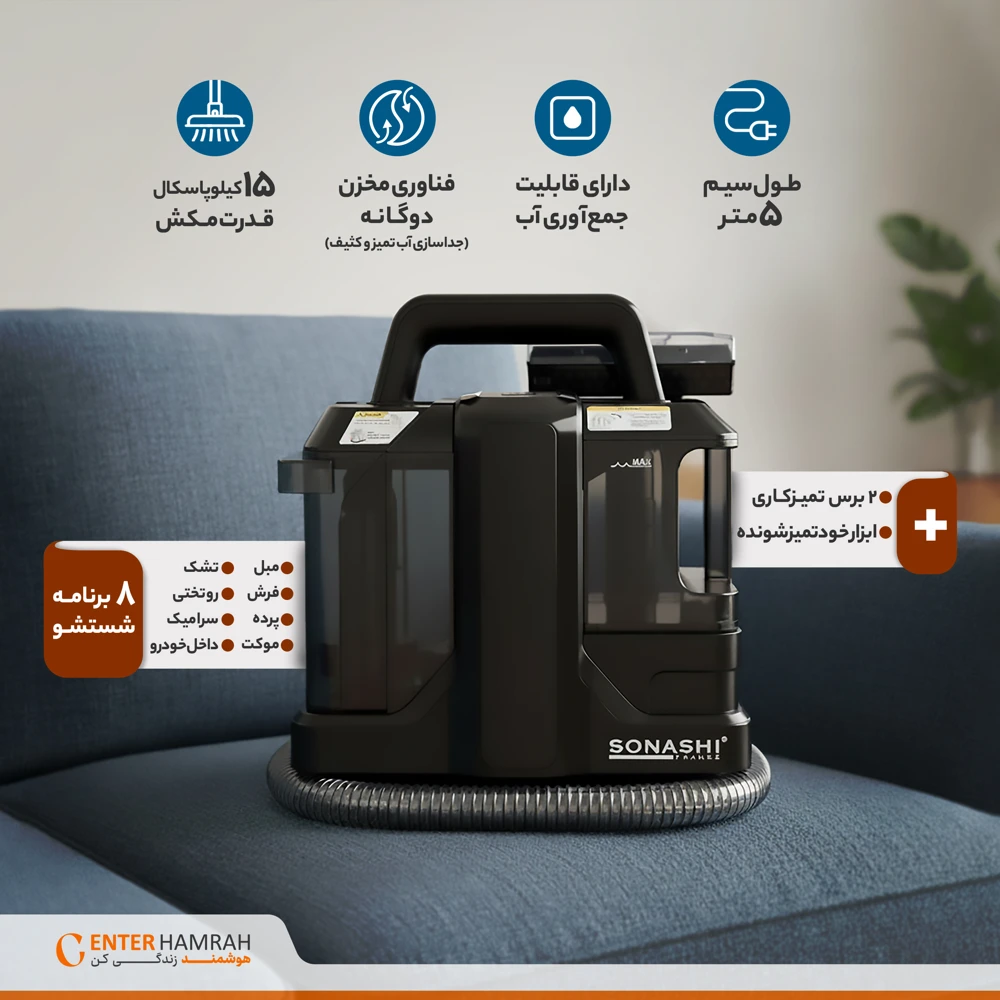با مبل شوی سوناشی مدل SCC-001، نظافت مبلمان خود را به سطحی جدید ببرید! این دستگاه قدرتمند با عملکردی استثنایی، تمامی لکهها و گرد و غبار را بهراحتی از میان برمیدارد. طراحی کاربرپسند و کارایی بالا، تجربهای بینظیر از پاکیزگی را به شما هدیه میدهد. فرصت را از دست ندهید و همین حالا تمیزی بینقص را تجربه کنید!