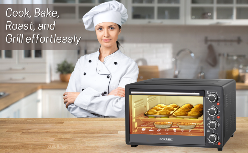 - فر چند منظوره: این اجاق برقی دارای عملکرد جوجهگردان و همرفت با چهار انتخاب گرمایش، کنترلکننده دمای قابل تنظیم و موارد دیگر است که به شما کمک میکند انواع مختلفی از دستور العملهای دلخواه خود را بدون هیچ مشکلی بپزید.